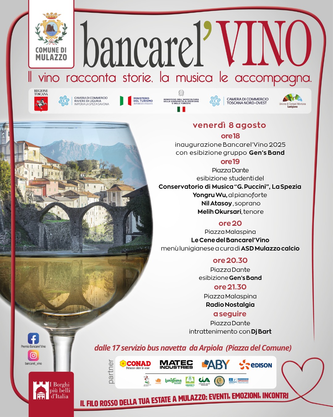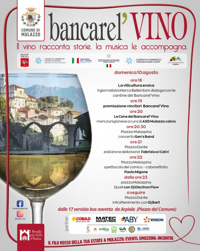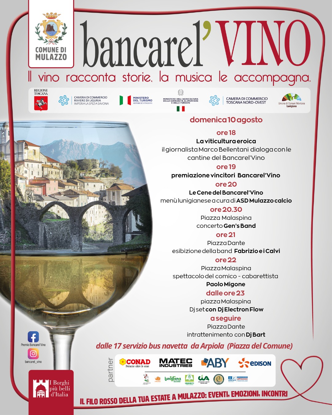 Il premio “Bancarel’Vino” nasce sulla scia del Premio Bancarella, noto premio letterario della vicina Pontremoli, lo storico premio enologico si è guadagnato, nel corso degli anni, sempre più consensi tra appassionati, visitatori e esperti di settore.