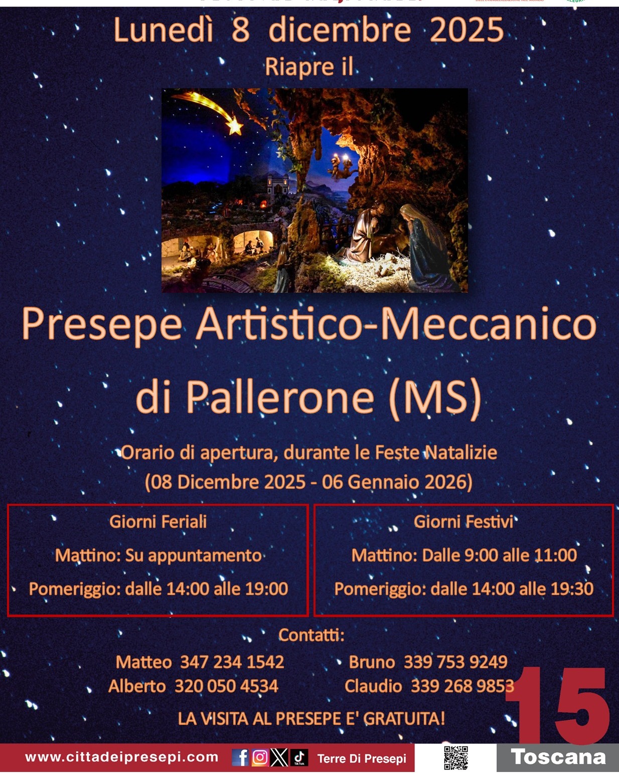 La magia del Presepe di Pallerone torna anche quest’anno! In Piazza Castello apertura fino al 6 Gennaio 2026