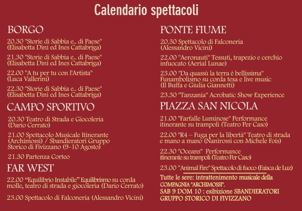 Il borgo di Gragnola (Fivizzano) per tre serate compie un viaggio nel tempo, fatto di storie, leggende e suggestioni che riportano in vita un antico mercato fatto di contadini, pastori, fanciulle, chierici, notai e folletti, fate e mercanti, folli e profeti, baccanali, inquisitori, trampolieri, celti, centurioni e cavalieri templari…nella terra della Luna.